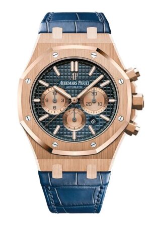Shop Audemars Piguet Royal Oak 26239OR, Chronograph, 18K Rose Gold, Blue Leather, Blue Dial, 41mm