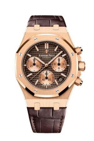 Shop Audemars Piguet Royal Oak 26239OR, Chronograph, 18K Rose Gold, Brown Leather, Brown Index Dial, 41mm