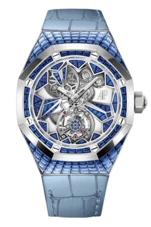 Shop Audemars Piguet Concept 26228BC.SS.D314CR.01, Tourbillon, Baguette Blue Sapphire, 18K White Gold, Openworked Dial, 39 mm