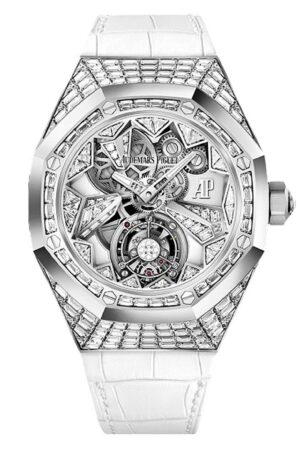 Shop Audemars Piguet Concept 26228BC.ZZ.D011CR.01, Flying Tourbillon, Diamond Baguette Bezel, 18K White Gold, Openworked Dial, 39 mm