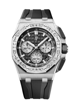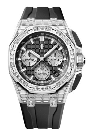 Audemars Piguet Royal Oak Offshore 26424BC, Baguette-cut diamonds, 18K White Gold, Black dial, 43 mm