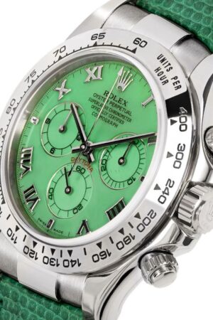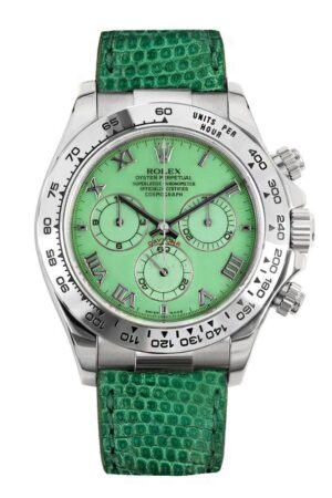Rolex Daytona 116519, 18K White Gold, Green Leather, Green Roman Dial