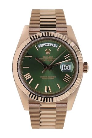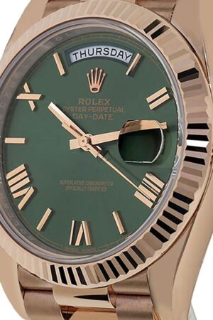 Shop Rolex Daydate 40, 228235, 18K Rose Gold, Olive Green Roman Dial, 40 mm