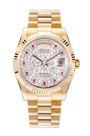 Rolex Day-Date 40, 118238, Yellow Gold, Pave’ Diamond Dial, 36 mm