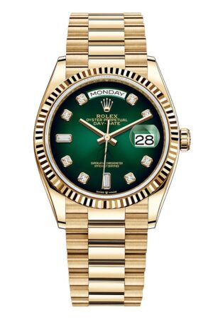Rolex Day-Date 36 128238, President, 18K Yellow Gold, Green Ombre Diam