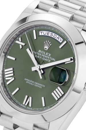 Rolex Day-Date 40 228206, President, Platinum, Green Olive Roman Dial, 40 mm