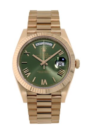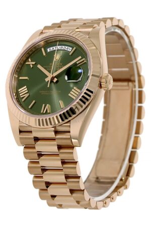 Rolex Day-Date 40, 228235, 18K Rose Gold, Olive Green Roman Dial, 40 mm