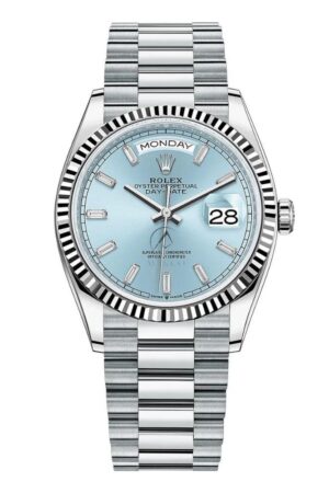 Shop Rolex Day-Date 36 128236, President, Platinum, Ice Blue Baguette Diamond 36 mm