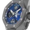 The Audemars Piguet 26589IO.OO.D030CA.01 Flying Tourbillon GMT watch is a captivating timepiece crafted with precision. Its titanium case offers durability and a sleek aesthetic, while the skeleton dial reveals the intricate mechanics of the watch. With a 44mm case, this bold timepiece maintains a wearable design. Ideal for adventurers, it boasts a water resistance of 100 meters.
