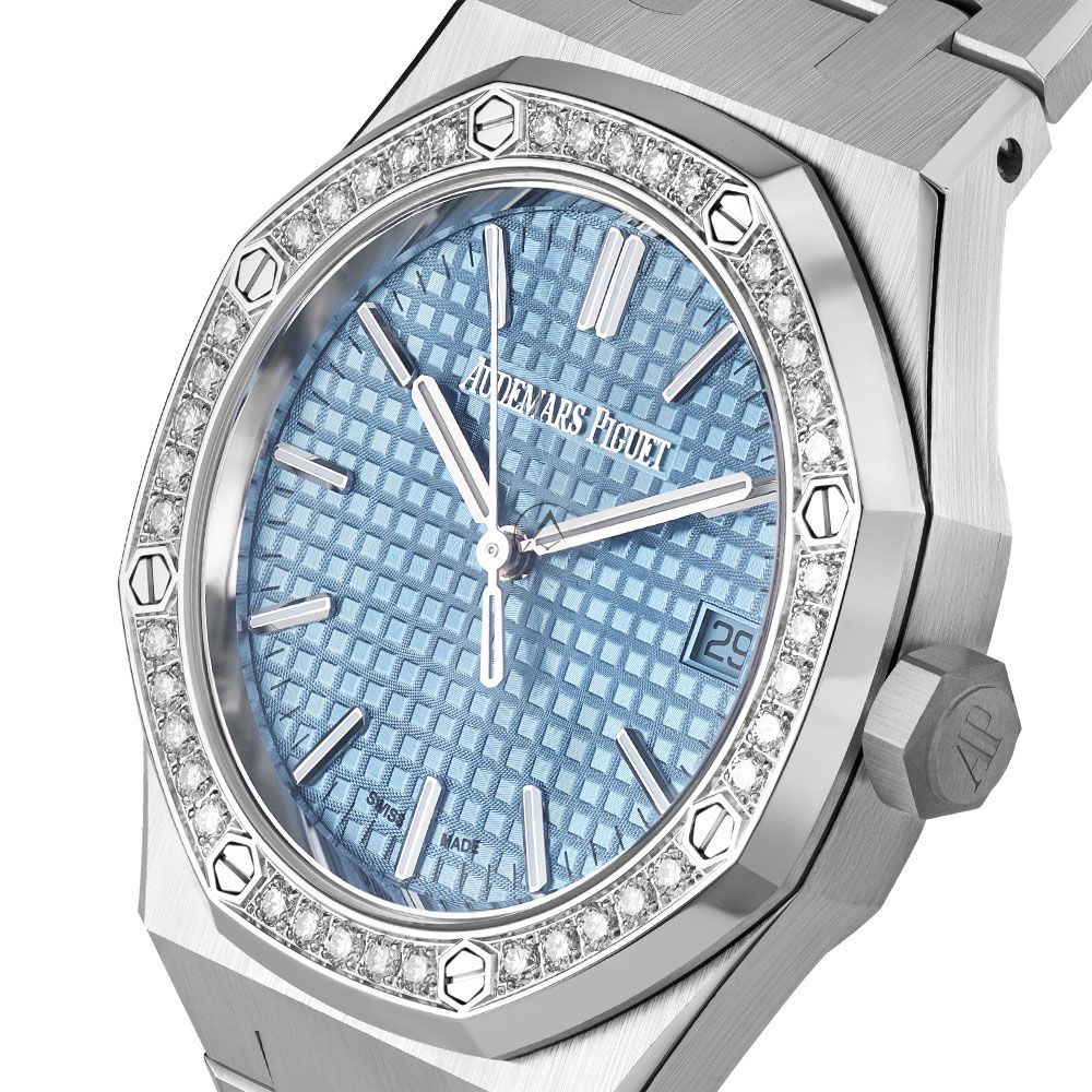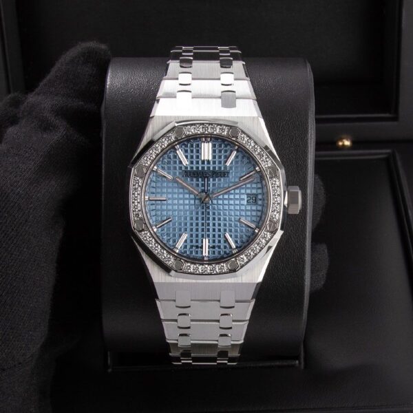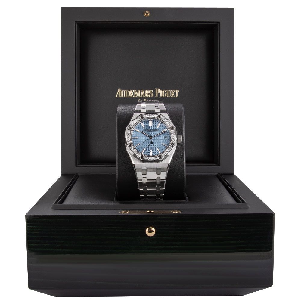 Audemars Piguet Royal Oak 15551ST, Steel, Diamond Bezel, Blue Dial, 37 mm