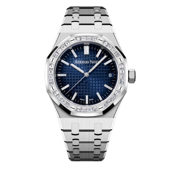 Audemars Piguet Royal Oak 37mm White Gold Diamond Set Bezel Blue Diamond Baguette Dial 15551BC.ZZ.1356BC.01