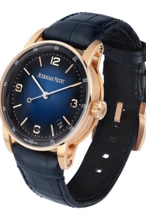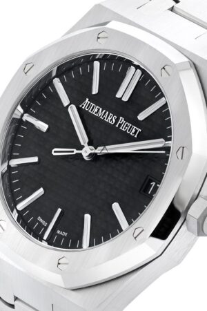 Audemars Piguet Royal Oak’s blue dial is made perfect for any occasion. The 34 mm stainless steel case is assembled with a screw-down crown. This timepiece is powered by the self-winding movement with a 70-hour power reserve and a water resistance of 165 feet.