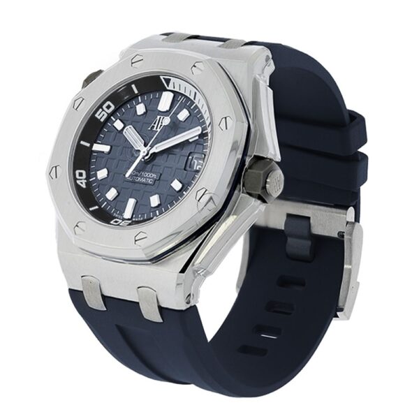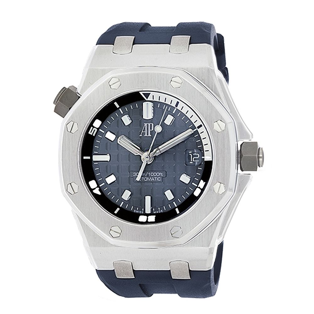 This exclusive Audemars Piguet Royal Oak Offshore Diver’s Watch has an eye catching blue dial. The 42 mm stainless steel case is assembled with a matching bezel and 32 jewels. Powered by the self-winding 4308 calibre, this timepiece has a 60-hour power reserve.