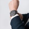 The black ‘Mega Tapisserie’ dial, featuring applied rose gold index hour markers and hands, adds to the bold statement of this timepiece. With a date display at 3 o’clock and three sub-dials offering 60-second, 30-minute, and 12-hour displays, its functionality is enhanced.