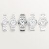 Case Shape Round Case Dimensions 36mm Case Thickness 12.1mm Case Material Stainless Steel Dial Color Silver Crystal Scratch Resistant Sapphire Bezel Fixed Screw-in Crown No Water Resistance 30m/100ft Case Back Solid Band Material Stainless Steel Color/Finish Brushed & Polished Band Notes Featuring an interchangeable bracelet. Clasp Hidden Folding Clasp Movement Automatic