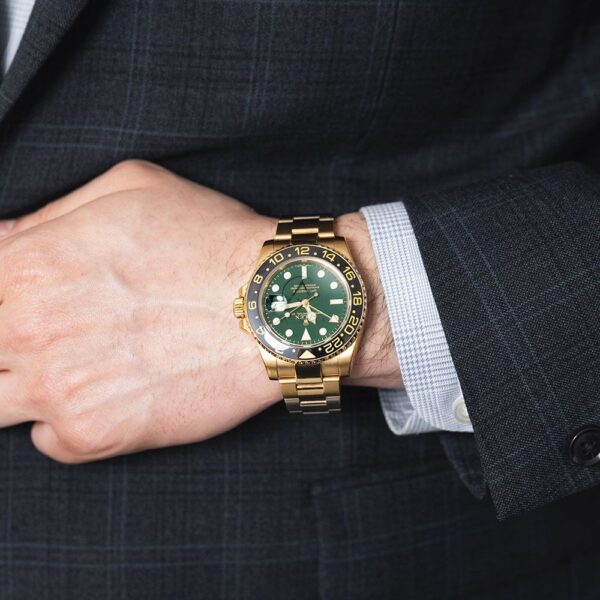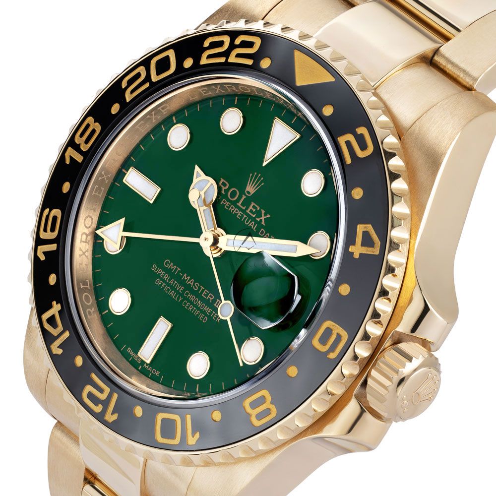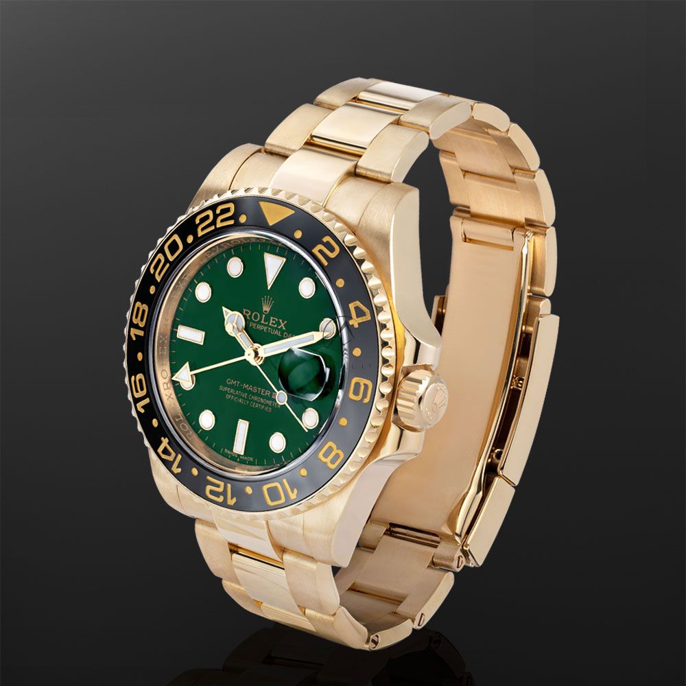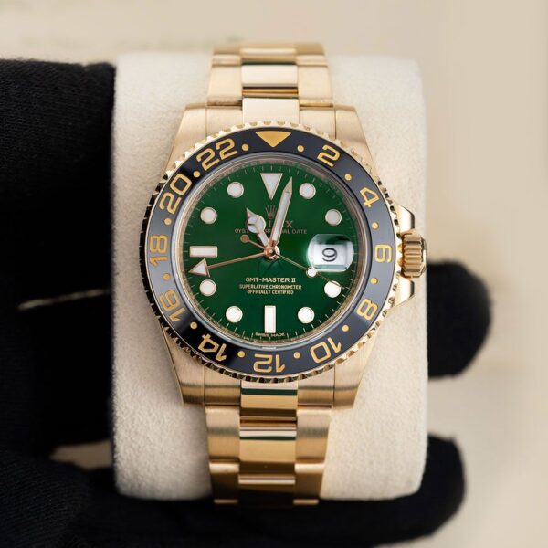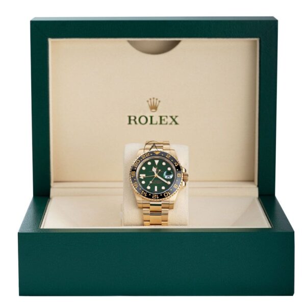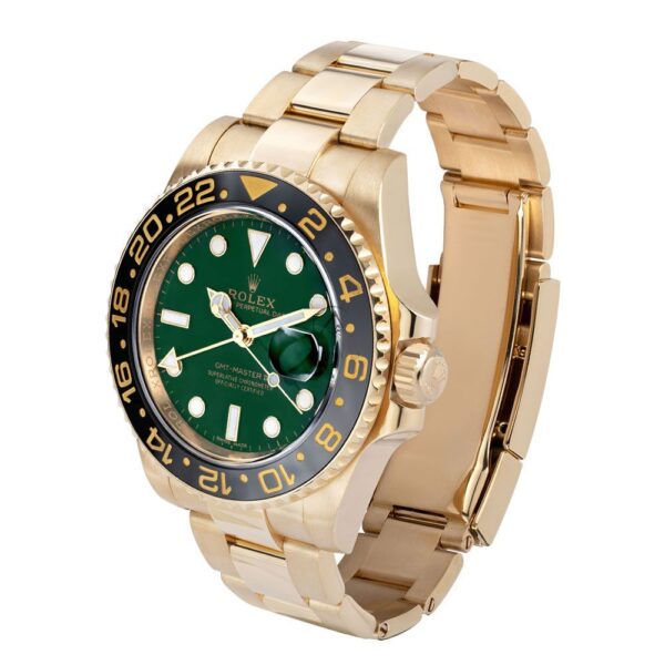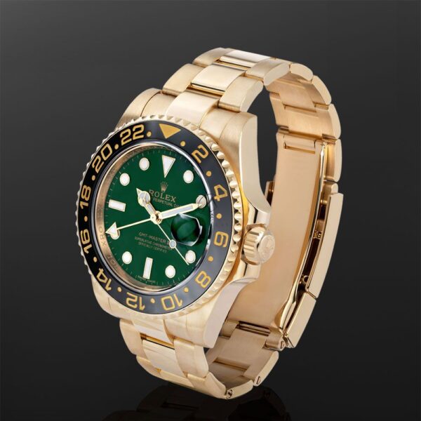 Luxury Timepiece: Rolex GMT Master II in 18K Yellow Gold with Green Dial – 116718LN