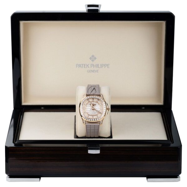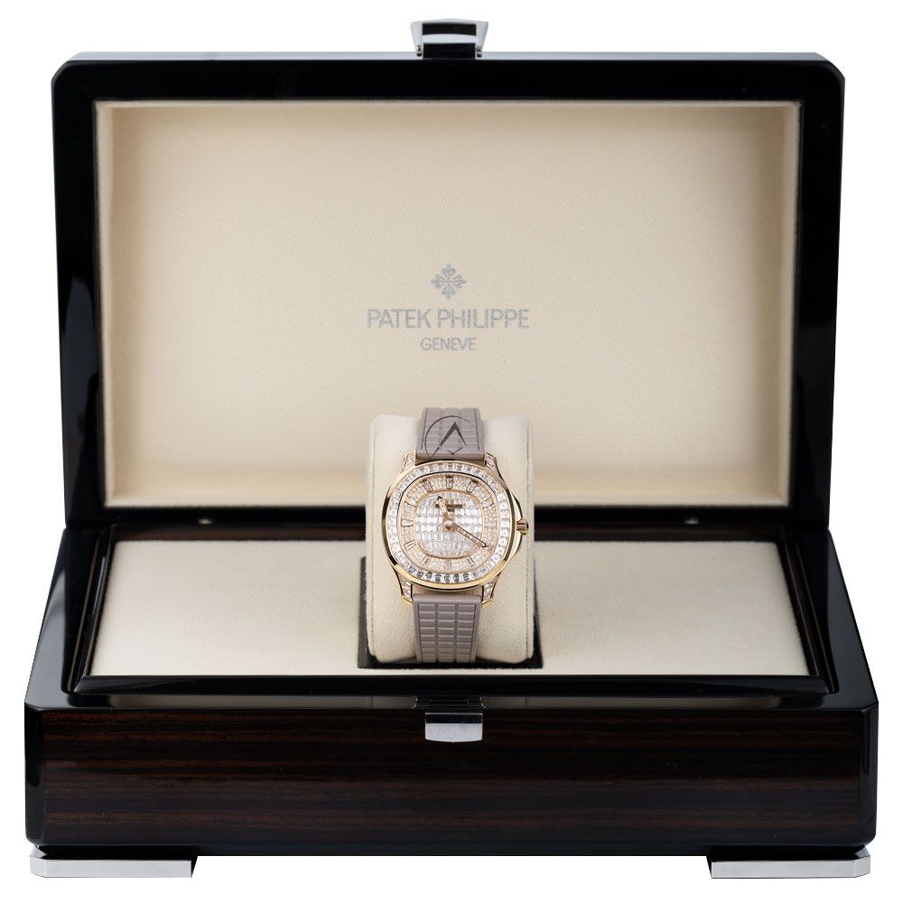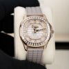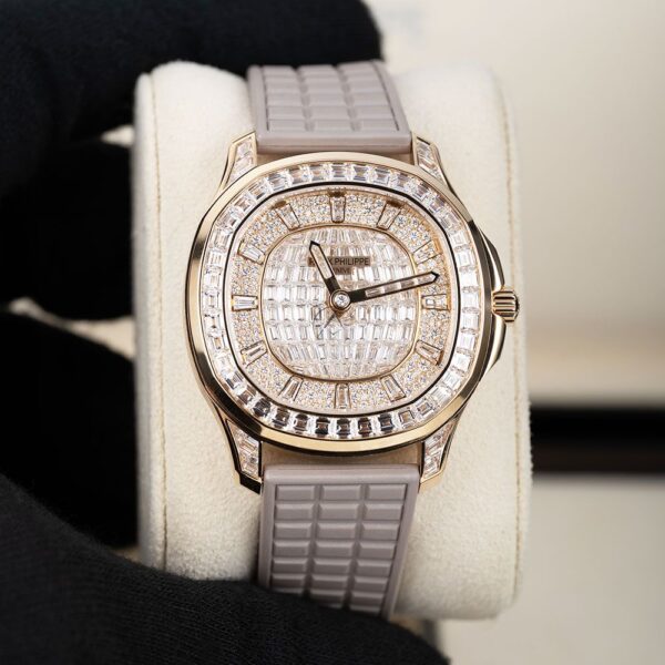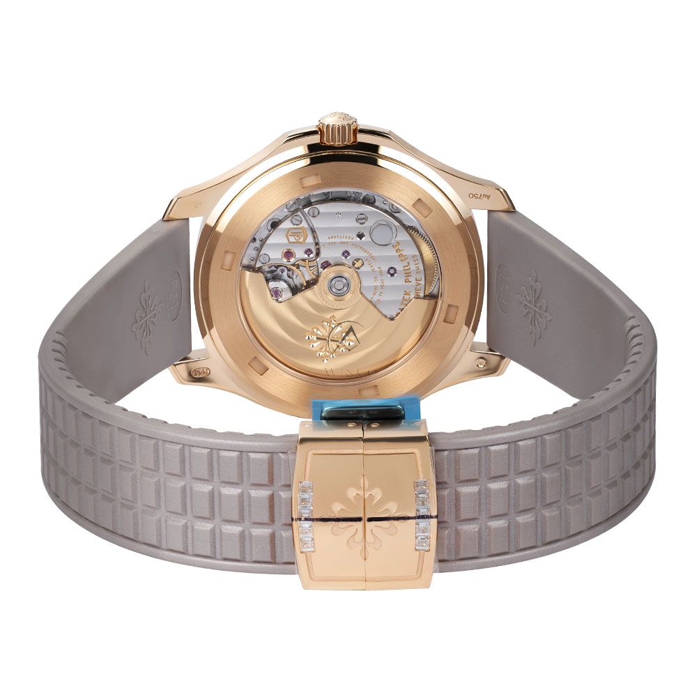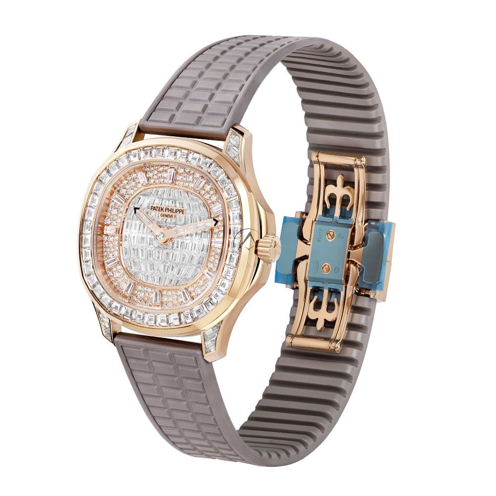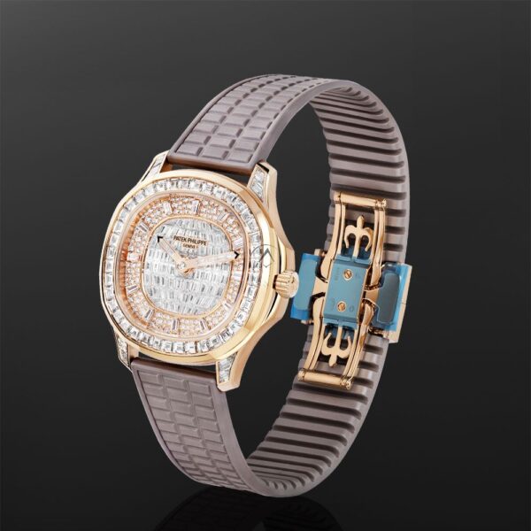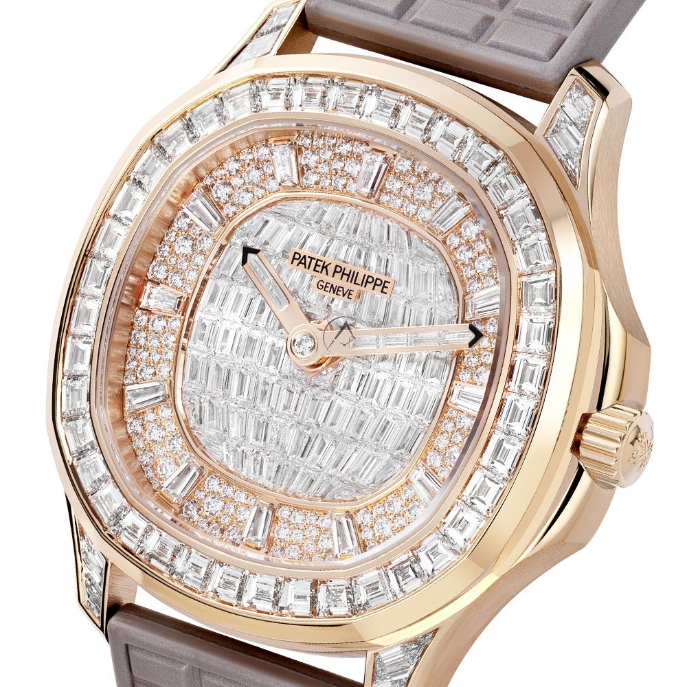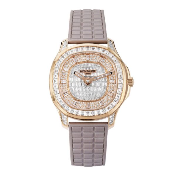The Patek Philippe 5062/450R Aquanaut Self-Winding is a stunning piece of Haute Joaillerie crafted from rose gold. Its dial, decorated with 160 brilliant-cut diamonds, showcases the pinnacle of artistry. This latest model of the Aquanaut Luce goes beyond the ordinary with sophisticated jewel-setting techniques such as invisible and snow-setting.
