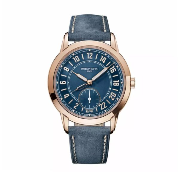 The Patek Philippe Calatrava 5224R-001 stands as a pinnacle of meticulous craftsmanship and enduring design. Encased in warm rose gold with a substantial 42mm case, this Travel Time watch seamlessly blends functionality with style. The captivating blue dial not only adds a touch of modernity but also enhances its overall allure. This timepiece features a water resistance of 30 meters.