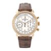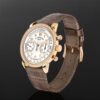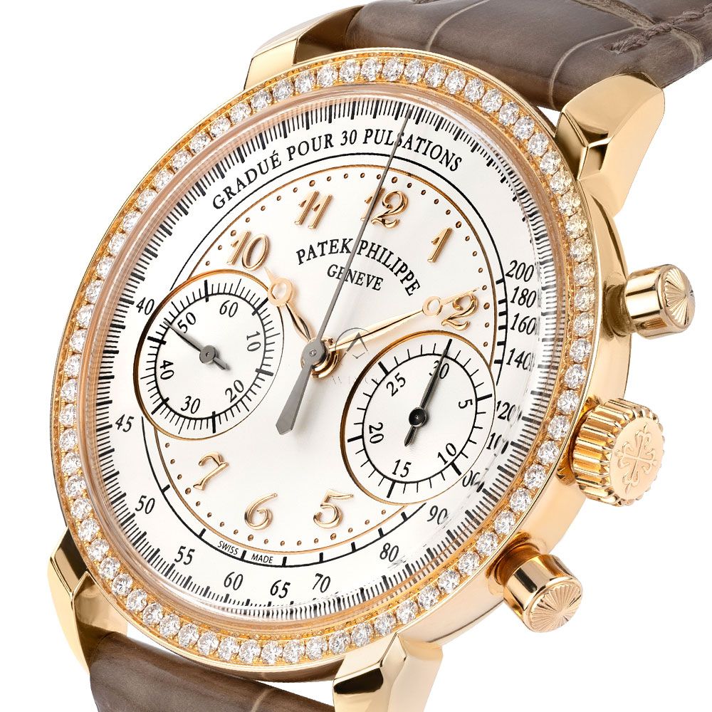 Patek Philippe has given a new look to its manually wound chronograph for women by endowing it with a timeless, understated rose-gold case adorned with vintage details. The rose gold 38 mm case is assembled with a gem set, rose gold bezel and a water resistance of 98 feet. Powered by the CH 29-535 PS calibre, this impressive timepiece boasts a 65-hour power reserve.