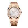 Making sports watches with an elegant design is a mighty feat, but Patek Philippe is always up to the task. The rose gold 32mm case is assembled with a diamond-set bezel, silver dial, and a date aperture. This timepiece is powered by the quartz E 23-250 S C calibre with a water resistance of 196 feet.