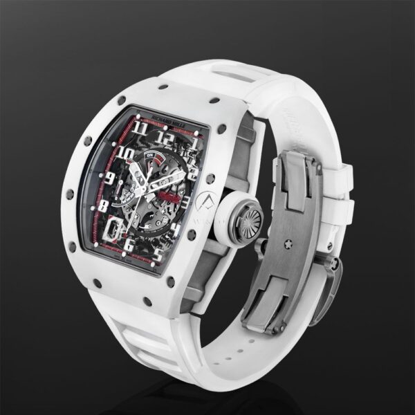 Ever the consummate perfectionist, Richard Mille aimed for peak design when he created the RM 030 timepiece. Limited Edition to 50 pieces, the white ceramic 50mm case is assembled with a transparent dial, and a white rubber strap. The ‘Japan Red’ Edition is powered by the RMAR1 calibre with a 50-hour power reserve.