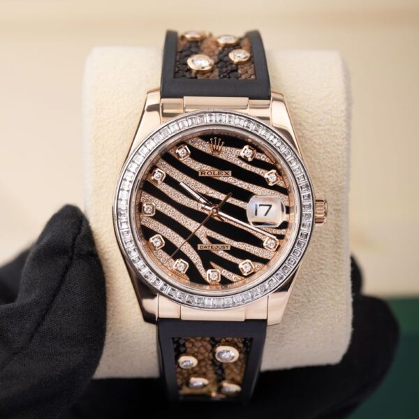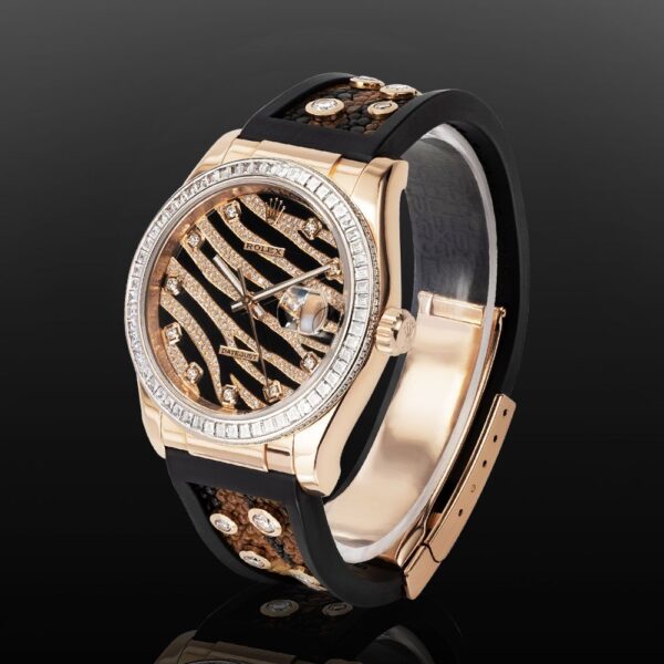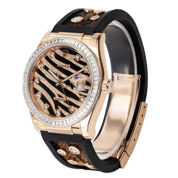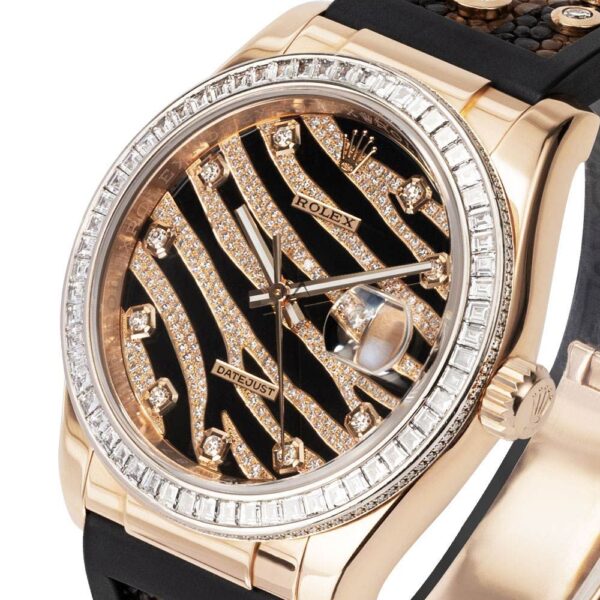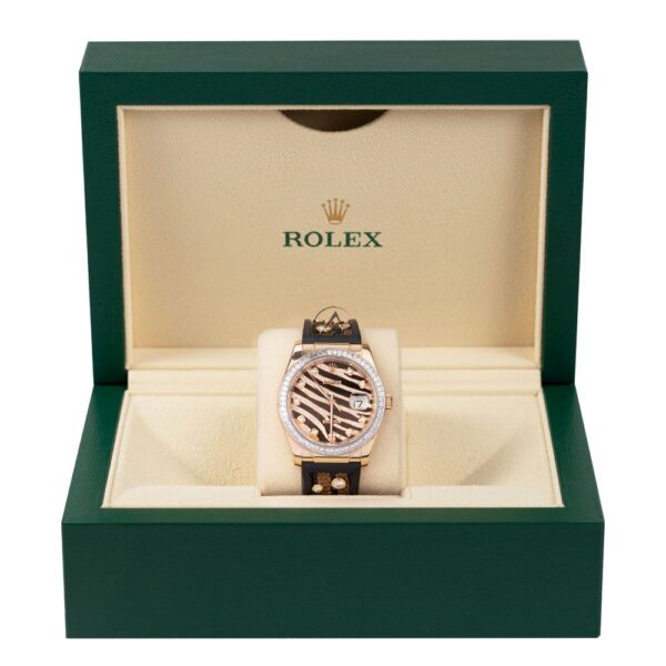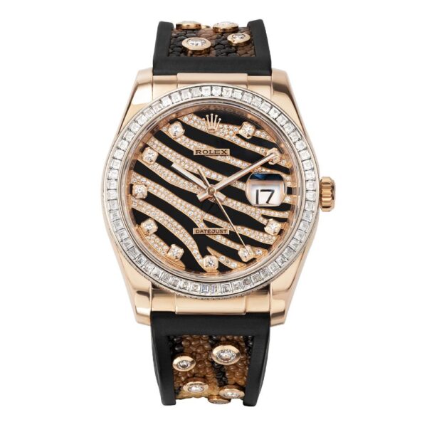 Rolex Datejust 36 116185BVR, 18K Rose Gold, Zebra Pave Diamond Dial 36