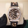 The Datejust 36 is a charming watch with a Zebra Pave Diamond dial that strikes the perfect balance between fun and function. The 18k rose gold 36 mm case is assembled with an 18k white gold diamond bezel, and black and brown Galuchat rubber strap. This timepiece is powered by the 3135 calibre.