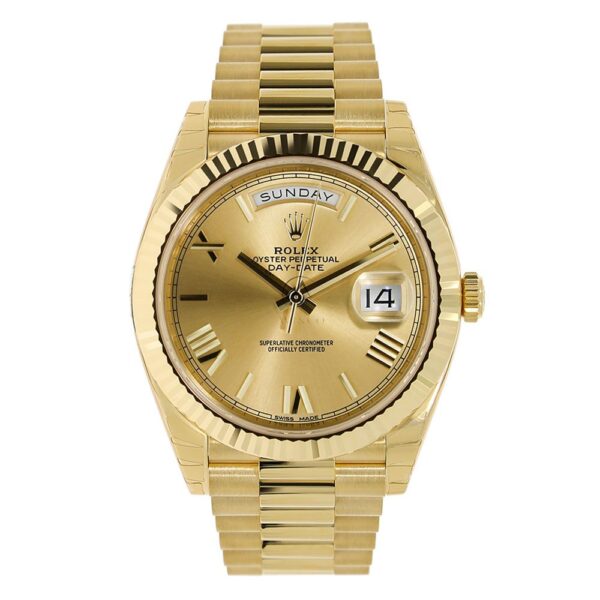 Rolex Day Date 228238, 18K Yellow Gold, Champagne Roman Dial, 40 mm