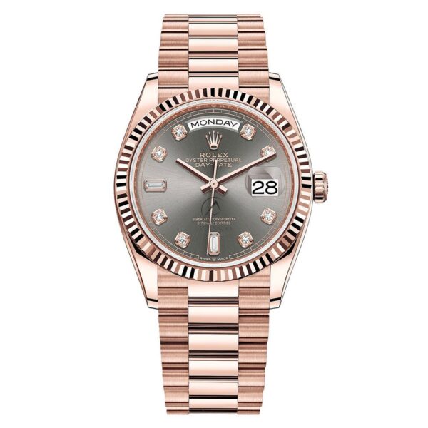 Rolex Day-Date 36 128235, President, 18K Rose Gold, Slate Diamond Dial