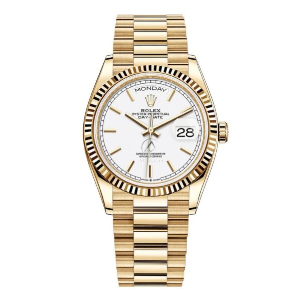 Rolex Day-Date 36 128238, President, 18K Yellow Gold, White Index Dial