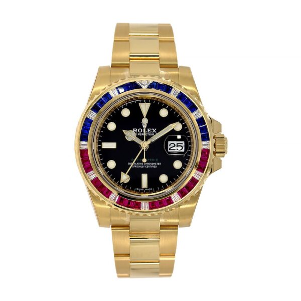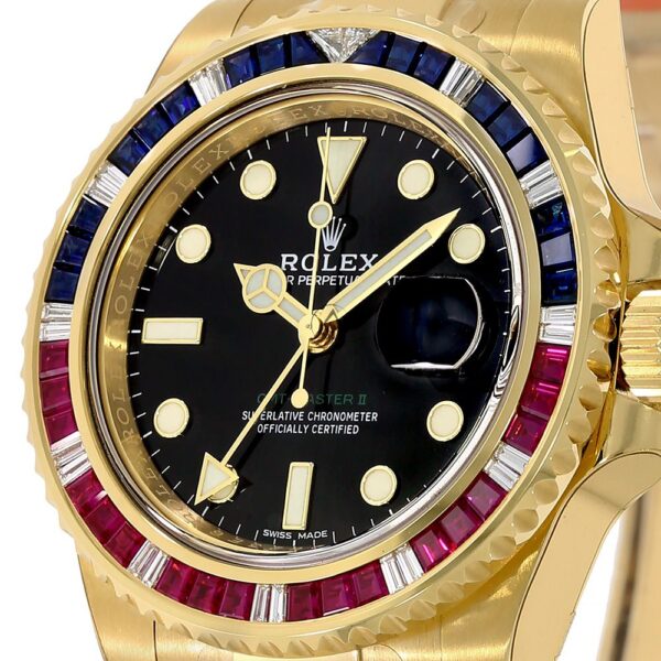Rolex GMT Master II, 116748SARU, 18K Yellow Gold, Diamond Bezel, Black Dial, 40 mm