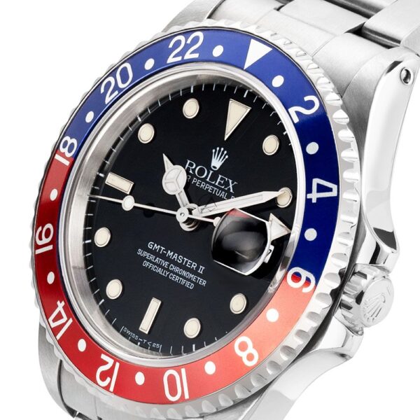 The Rolex GMT-Master II Ref 16710 proves to be a fascinating timepiece. Introduced to the market in 1989, it continued to be in production for nearly two decades. Evidently, it enjoyed strong demand and sales during its production run, which translates to a significant presence in the collector’s market today. In other words, it does not fall into the category of “rare” timepieces. Furthermore, this particular reference doesn’t offer any distinctive features. It features a 40mm stainless steel case, stainless steel bezel, a black dial, and a water resistance of up to 100 meters.