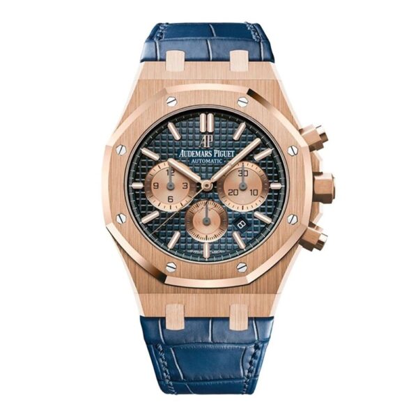 Shop Audemars Piguet Royal Oak 26239OR, Chronograph, 18K Rose Gold, Blue Leather, Blue Dial, 41mm