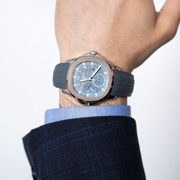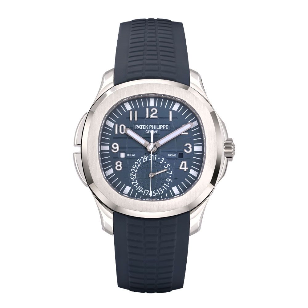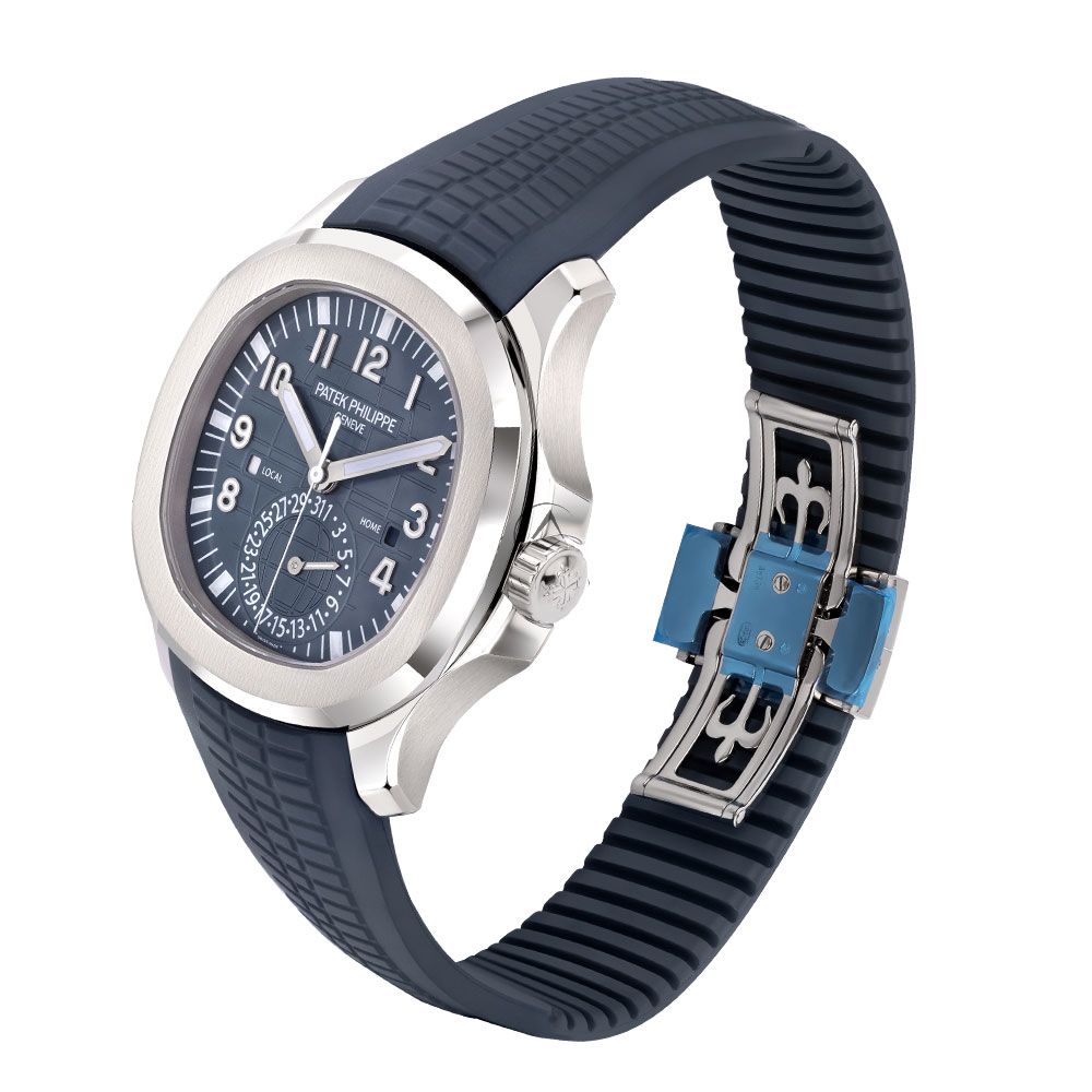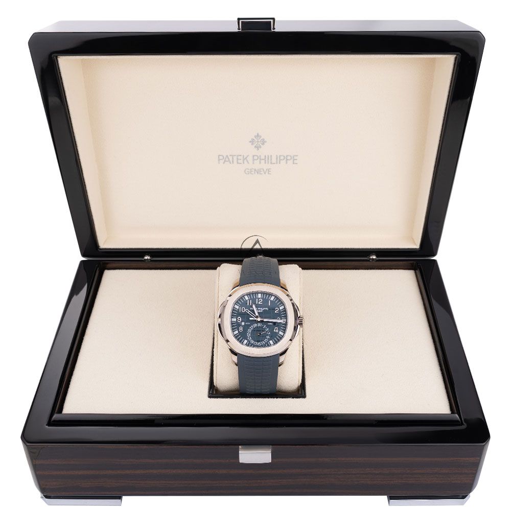 Shop Patek Philippe Aquanaut Travel Time 5164G-001, 18K White Gold, Opaline Blue-gray Dial, 41 mm