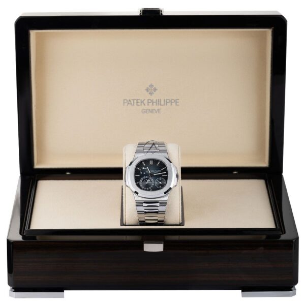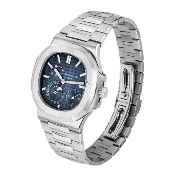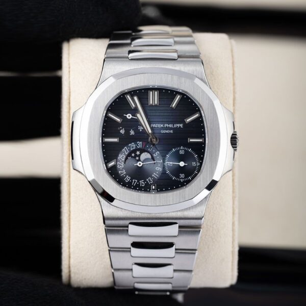 The Patek Philippe Nautilus Moonphase is a sophisticated timepiece that combines elegance and functionality. Its 40mm stainless steel case houses a stunning moon phase display, along with a date indicator and precise timekeeping. Powered by the self-winding 240 PS IRM C LU caliber, this watch offers a 48-hour power reserve. With a water resistance of 120 meters, the Nautilus Moonphase is both stylish and durable.