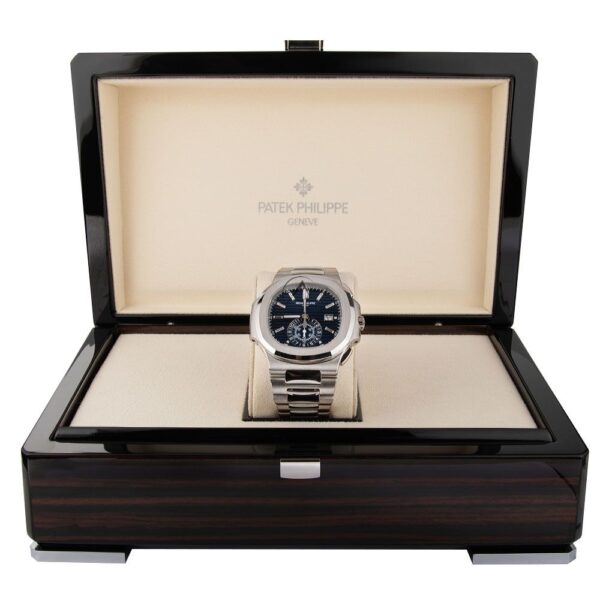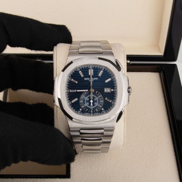 The Patek Philippe Nautilus 5976/1G-001 is a pinnacle of horological craftsmanship. This 44mm 18k white gold timepiece features a striking blue dial adorned with diamond hour markers, commemorating the brand’s 40th anniversary. Powered by the self-winding CH 28-520 C caliber, this chronograph offers a 55-hour power reserve and precise timekeeping. The 5976/1G-001 is a limited-edition masterpiece that embodies luxury, innovation, and the enduring legacy of Patek Philippe.